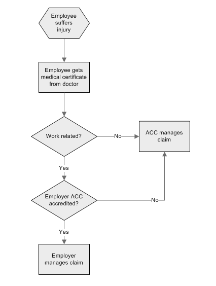 ACC Accredited Employers manage their employees' workplace injury claims. These employers replace the role of the ACC to help an employee return to work. If the injury is not work-related, then the employee makes a claim to the ACC — not the employer.
