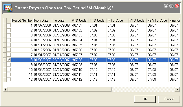 Roster periods should be opened prior to creating one-off Rosters for a period range.